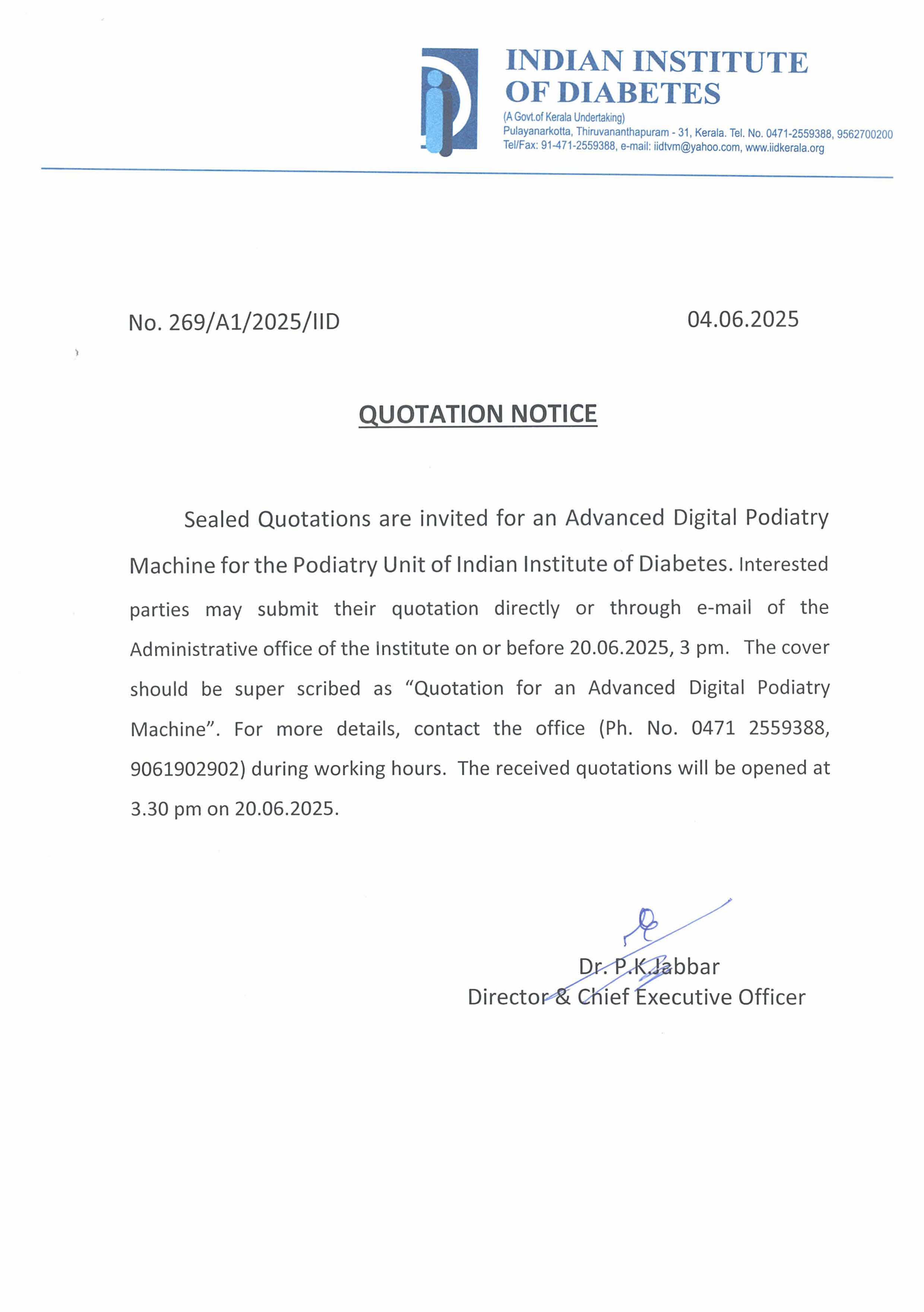 Invitation of quotation for Reagents for Biochemistry Laboratory