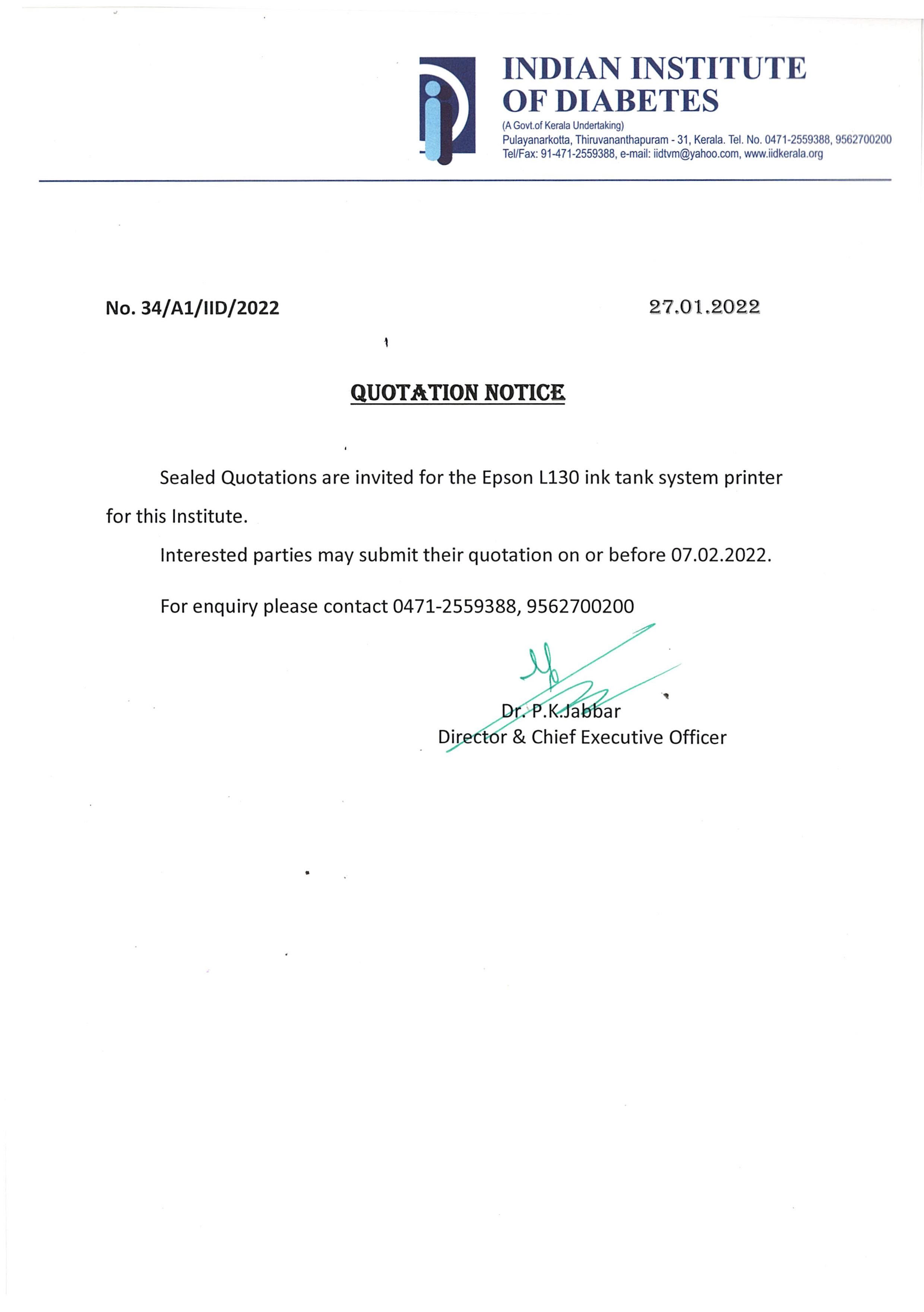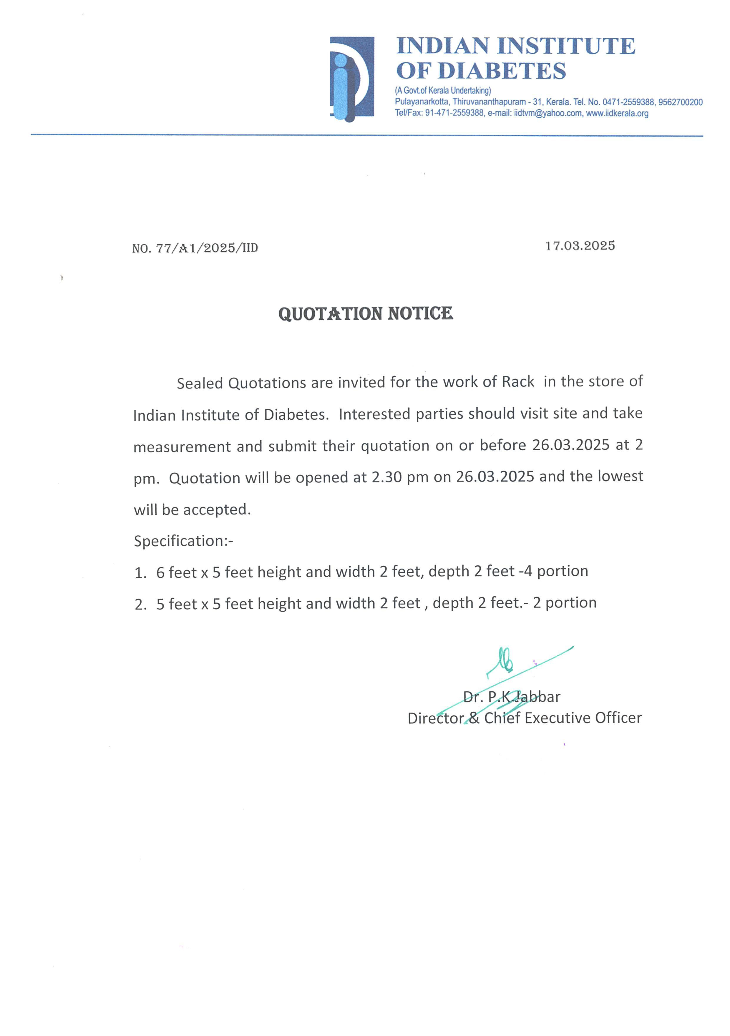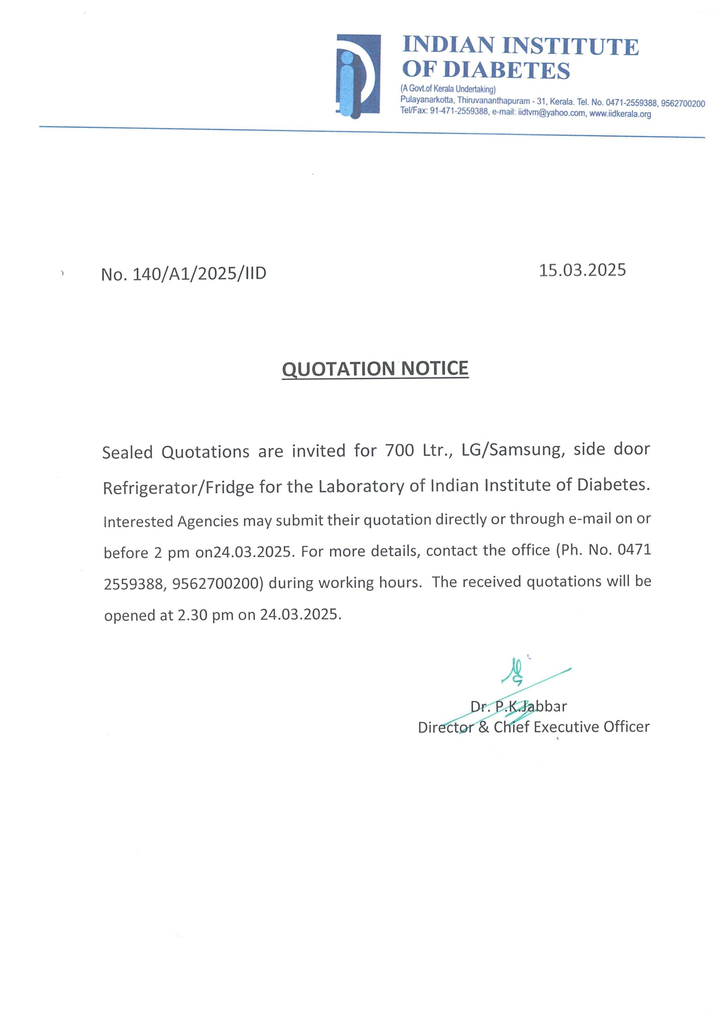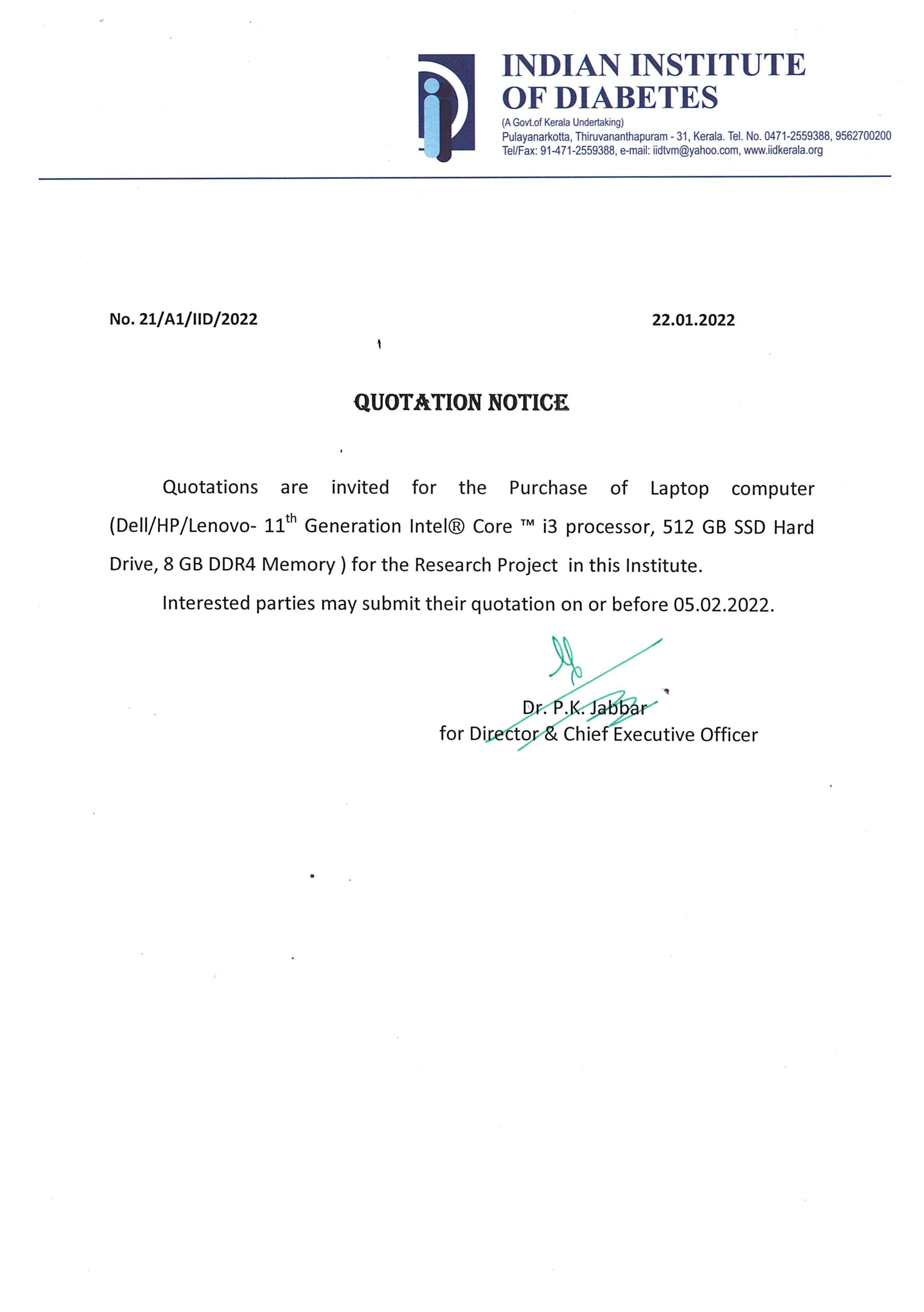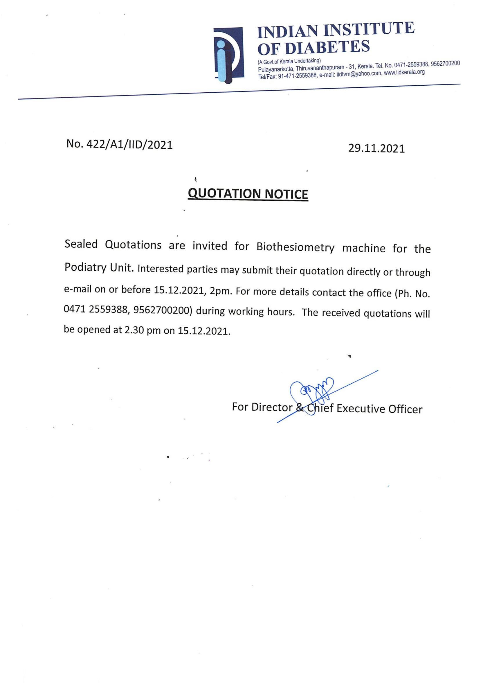 Invitation of quotation for Reagents for Biochemistry Laboratory