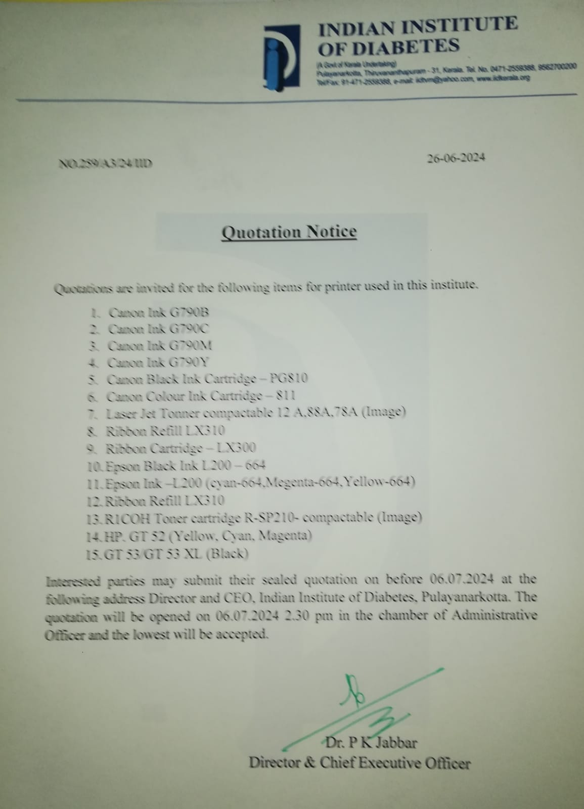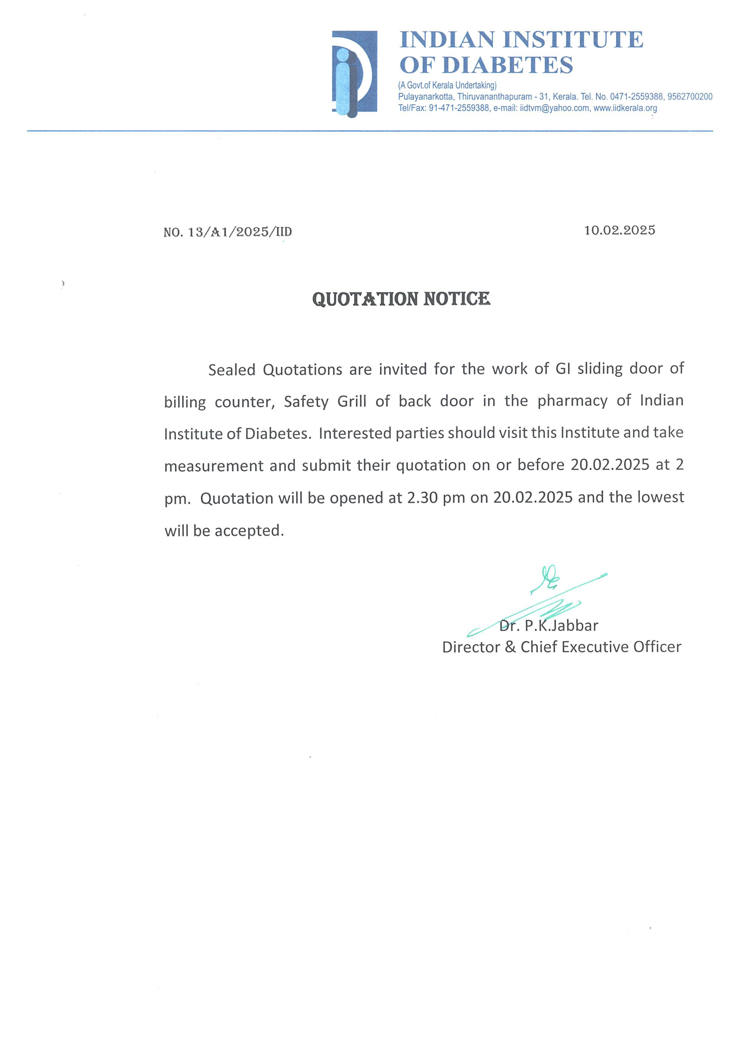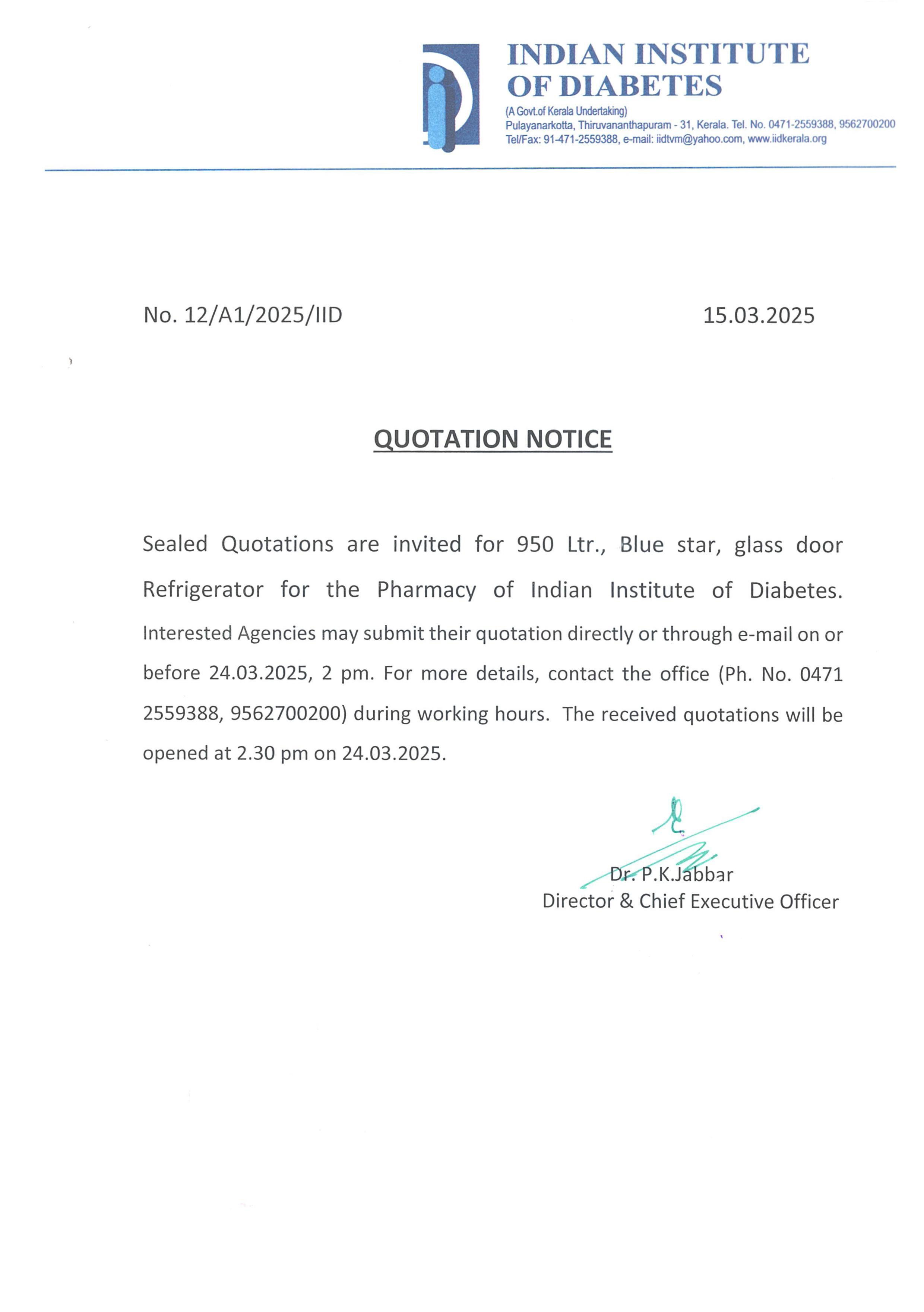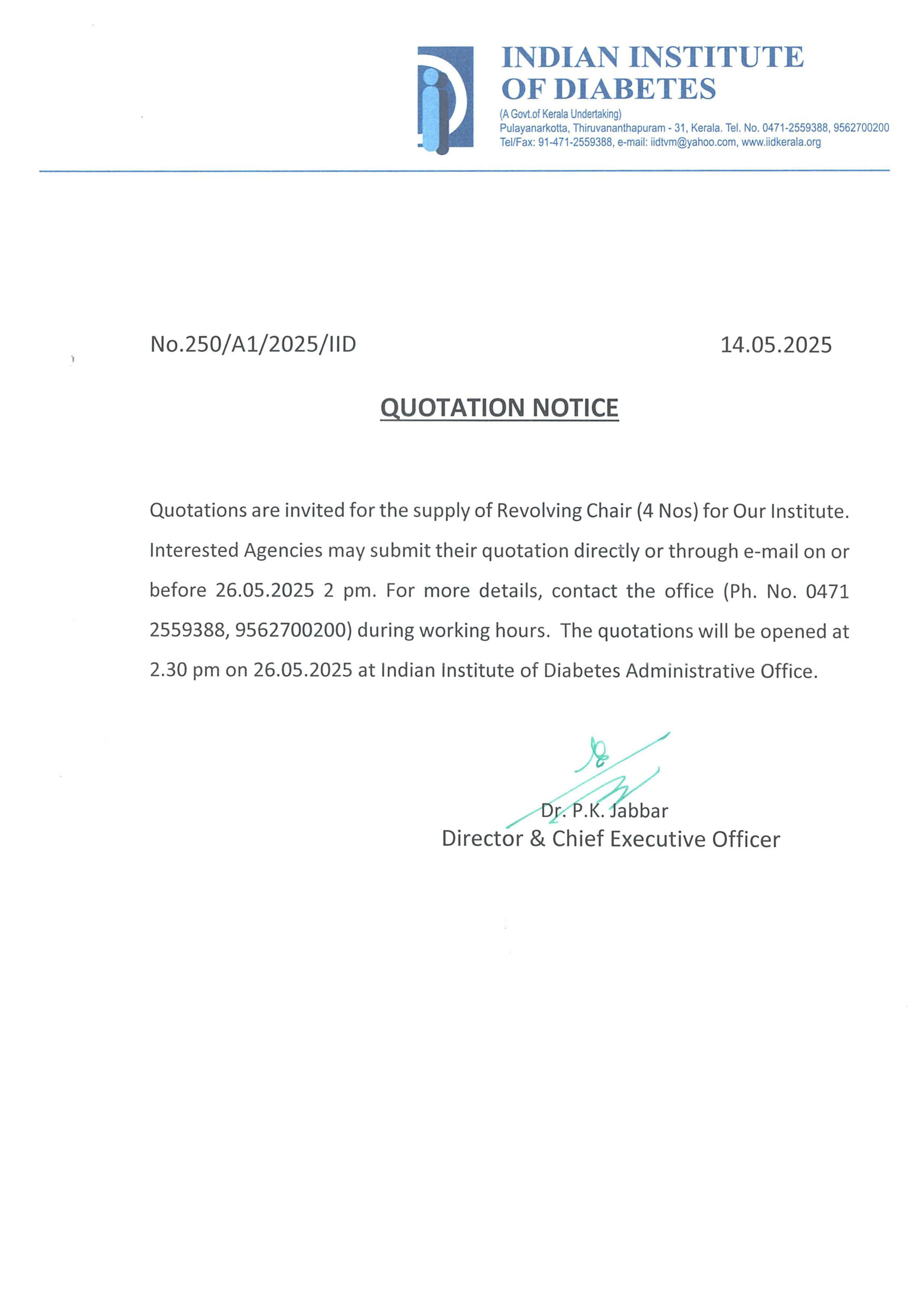 Invitation of quotation for Reagents for Biochemistry Laboratory