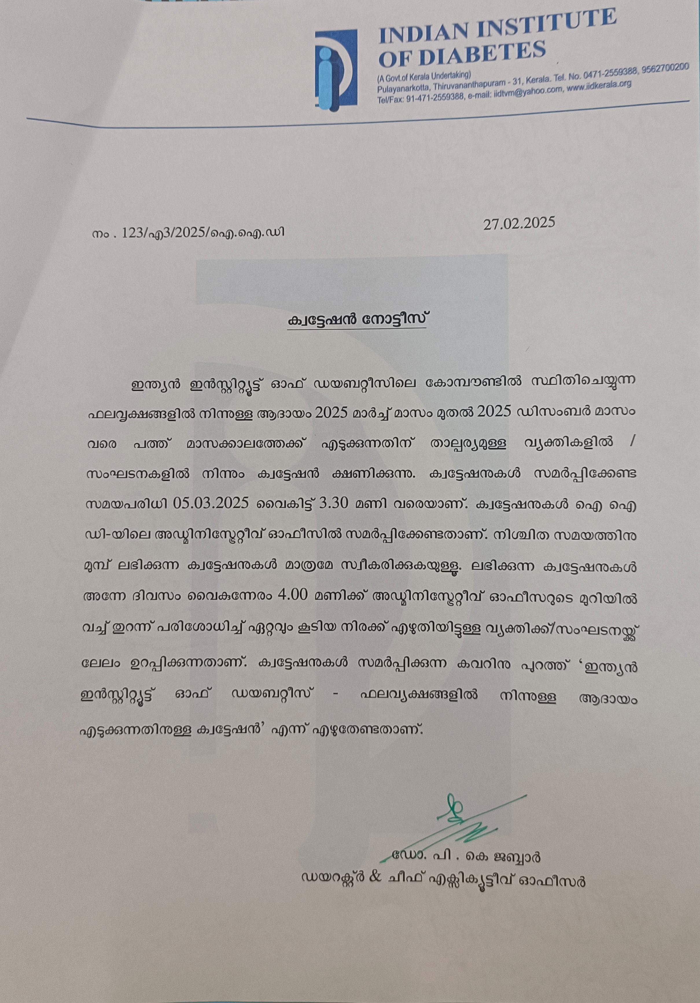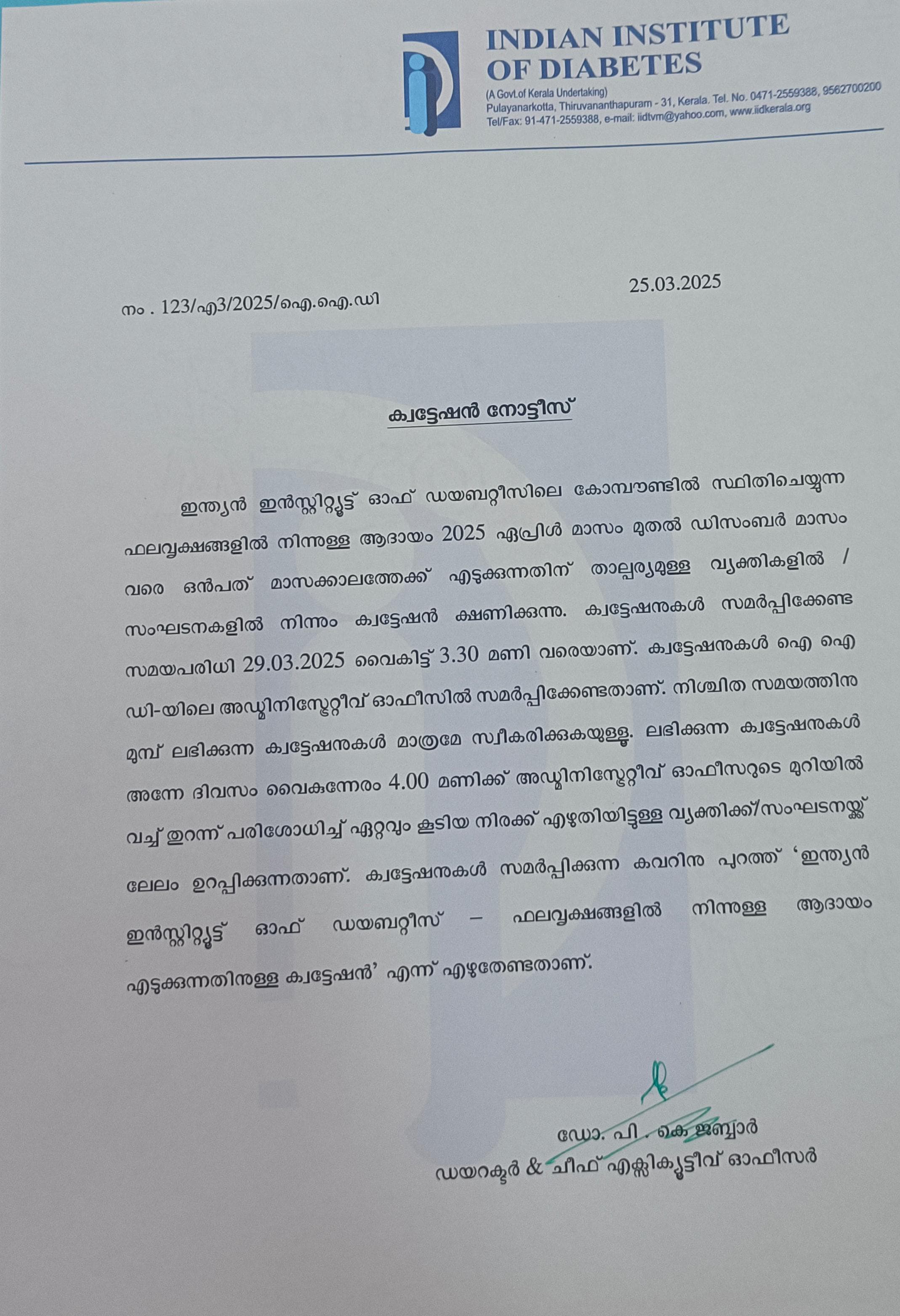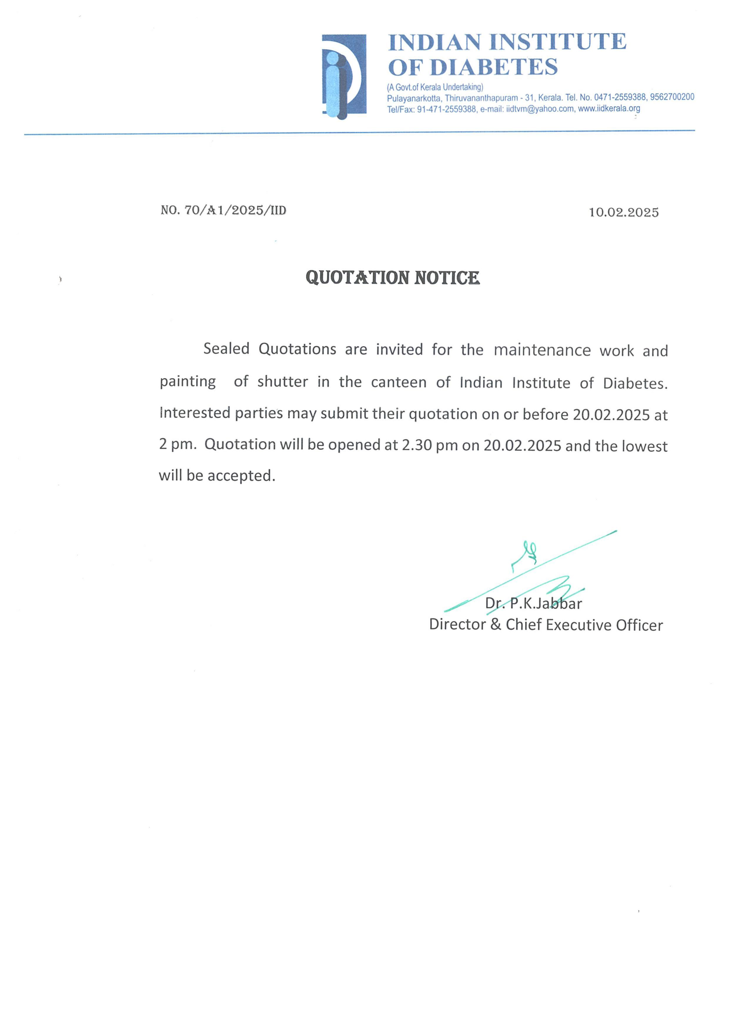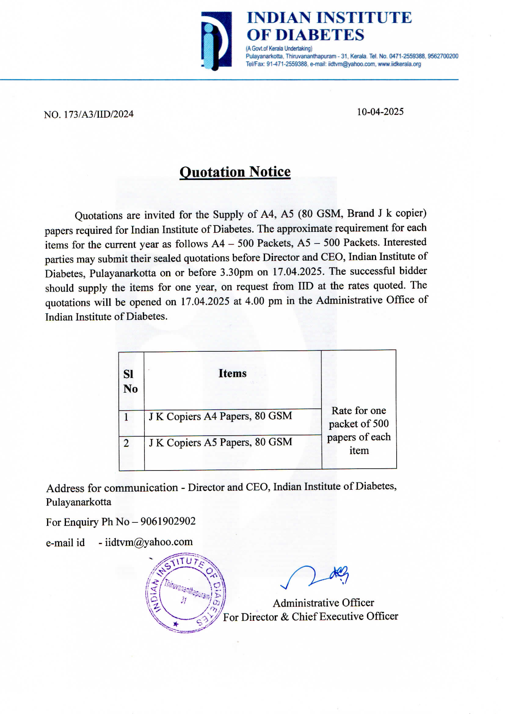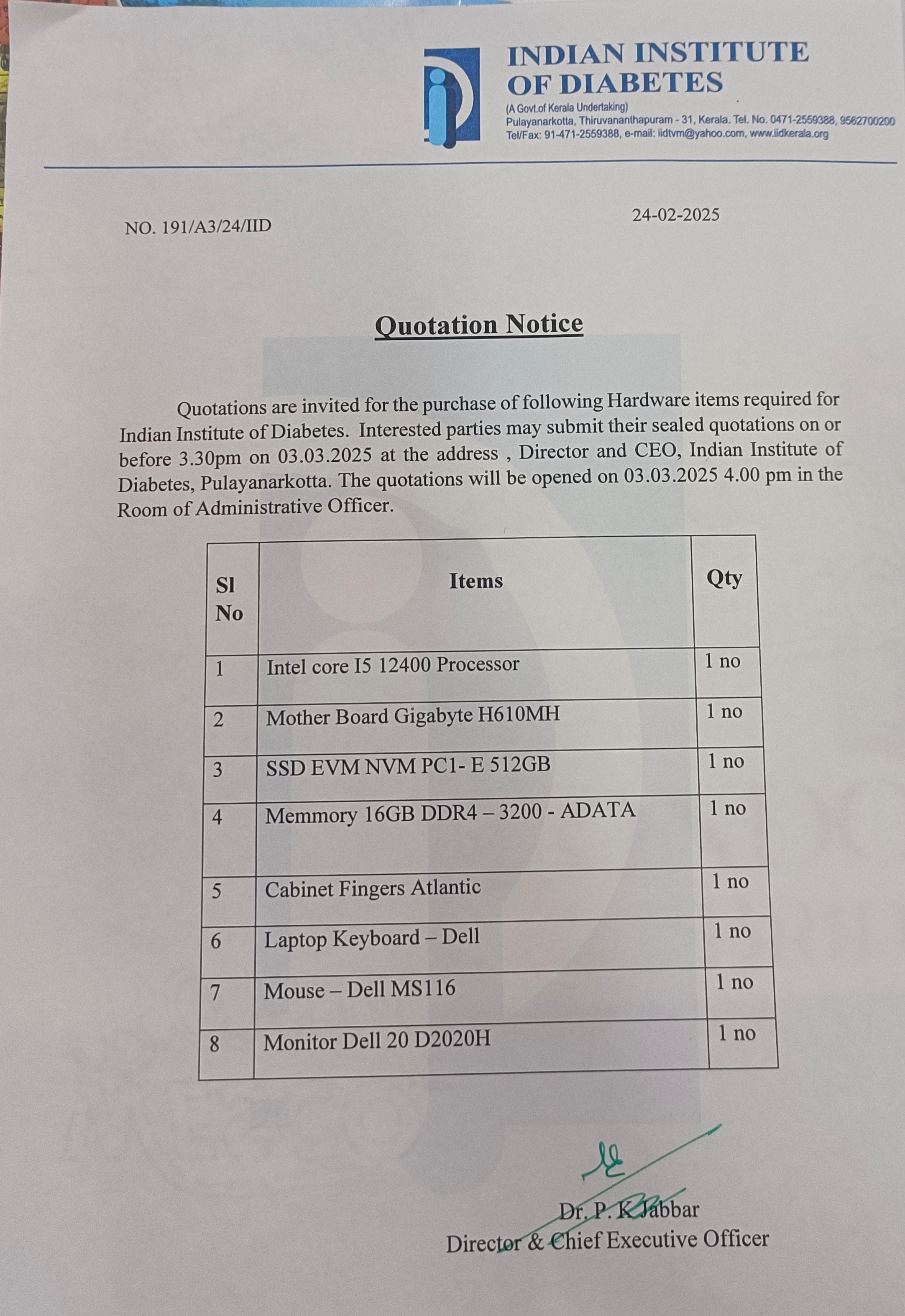 Invitation of quotation for Reagents for Biochemistry Laboratory